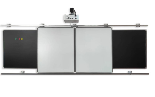 Рельсовая система дает возможность мобильно управлять информацией на поверхности доски такая система удобна преподавателям, работающим с большим объемом информации на обычной школьной доске.