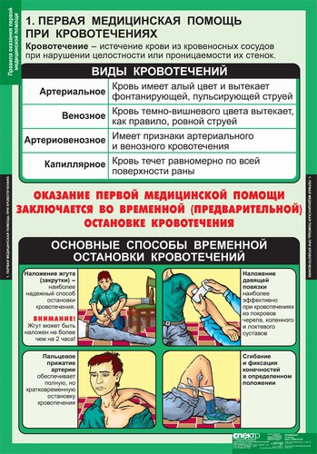 Первая медицинская помощь при кровотечениях. Первая медицинская помощь при переломах, растяжениях и ушибах. Первая медицинская помощь при тепловом и солнечном ударе. Первая медицинская помощь при ожогах. Первая медицинская помощь при отморожении и переохлаждении организма. Первая медицинская помощь при несчастных случаях на воде. Первая медицинская помощь при укусах животных и насекомых. Первая медицинская помощь при отравлениях. Первая медицинская помощь при поражении сильнодействующими ядовитыми веществами. Первая медицинская помощь при поражении электрическим током. Первая медицинская помощь при остановке сердца. Правила наложения повязок. Правила проведения искусственной вентиляции легких и непрямого массажа сердца. Правила транспортировки пострадавших.