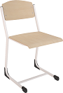 Стул ученический, регулируемый по высоте. Сиденье и спинка стула выполнены из гнутоклееной фанеры и имеют изогнутую, обтекаемую форму, крепятся к металлическому каркасу с помощью заклепок. Каркас изготовлен из металлический трубы плоскоовального сечения и окрашен износостойкой порошковой краской.